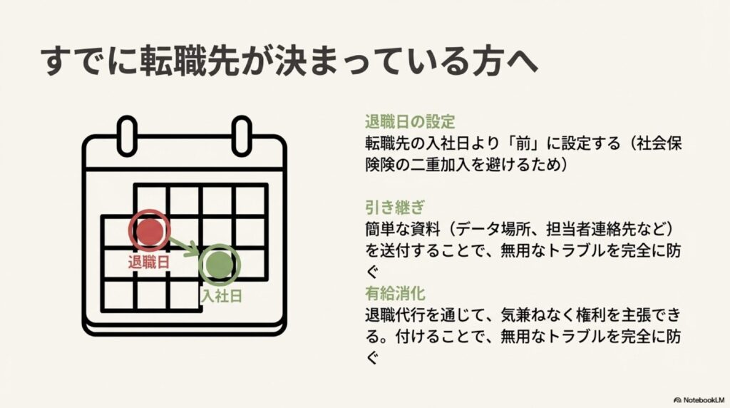 転職先が決まっているということは、絶対に失敗が許されない状況です。退職手続きが泥沼化して入社日に間に合わなくなったり、書類が届かずに転職先で手続きができなかったりする事態は避けなければなりません。ここでは、確実に成功させるための具体的なステップを解説します。